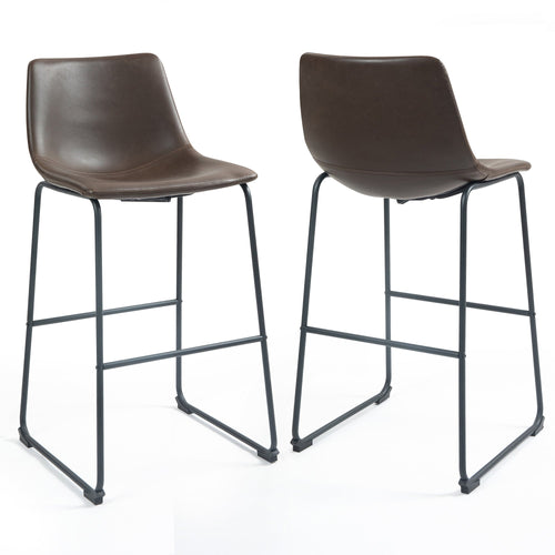 Adan Iron Frame Dark Brown PU Leather Bar Stool (Set of 2)